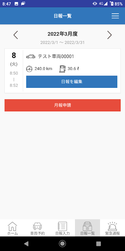 "Aplikasi Laporan Harian & Catatan Pemeriksaan Alkohol (Aplikasi Pemeriksaan Kesehatan/Alkohol & Laporan Harian)" memungkinkan Anda mengelola pengoperasian kendaraan perusahaan dengan mudah dan efisien, seperti membuat reservasi kendaraan, membuat laporan mengemudi harian, dan melakukan panggilan darurat, di ponsel Anda aplikasi smartphone atau PC. Ini adalah layanan yang dapat diubah menjadi