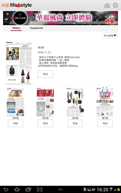 《明報生活》為明報副刊揭頁版平板app,原版上載精選生活時尚資訊,包括時裝、名表、美容、吃喝玩樂等,更有不同時裝展、鐘表展等報道。