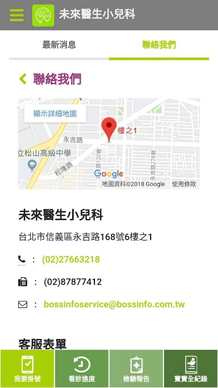 提供線上掛號、看診進度查詢、寶寶全紀錄、檢驗報告等功能展示。