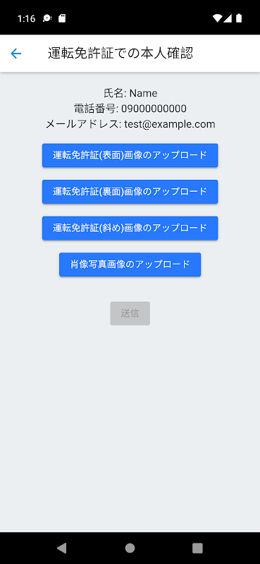 ・Di layar setelah masuk, pilih SIM, ambil gambar SIM dari arah depan, belakang, dan diagonal, dan gambar potret orang yang bersangkutan, dan kirimkan ke layanan yang lebih tinggi.