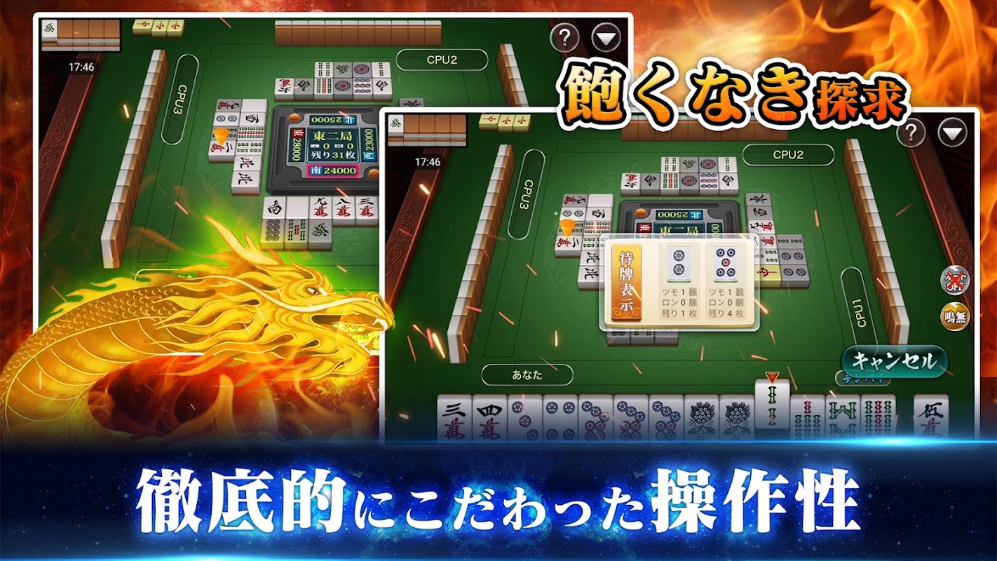 初心者から上級者まで無料でずっと遊べて点数計算もしてくれる無料の人気マージャンアプリ。
