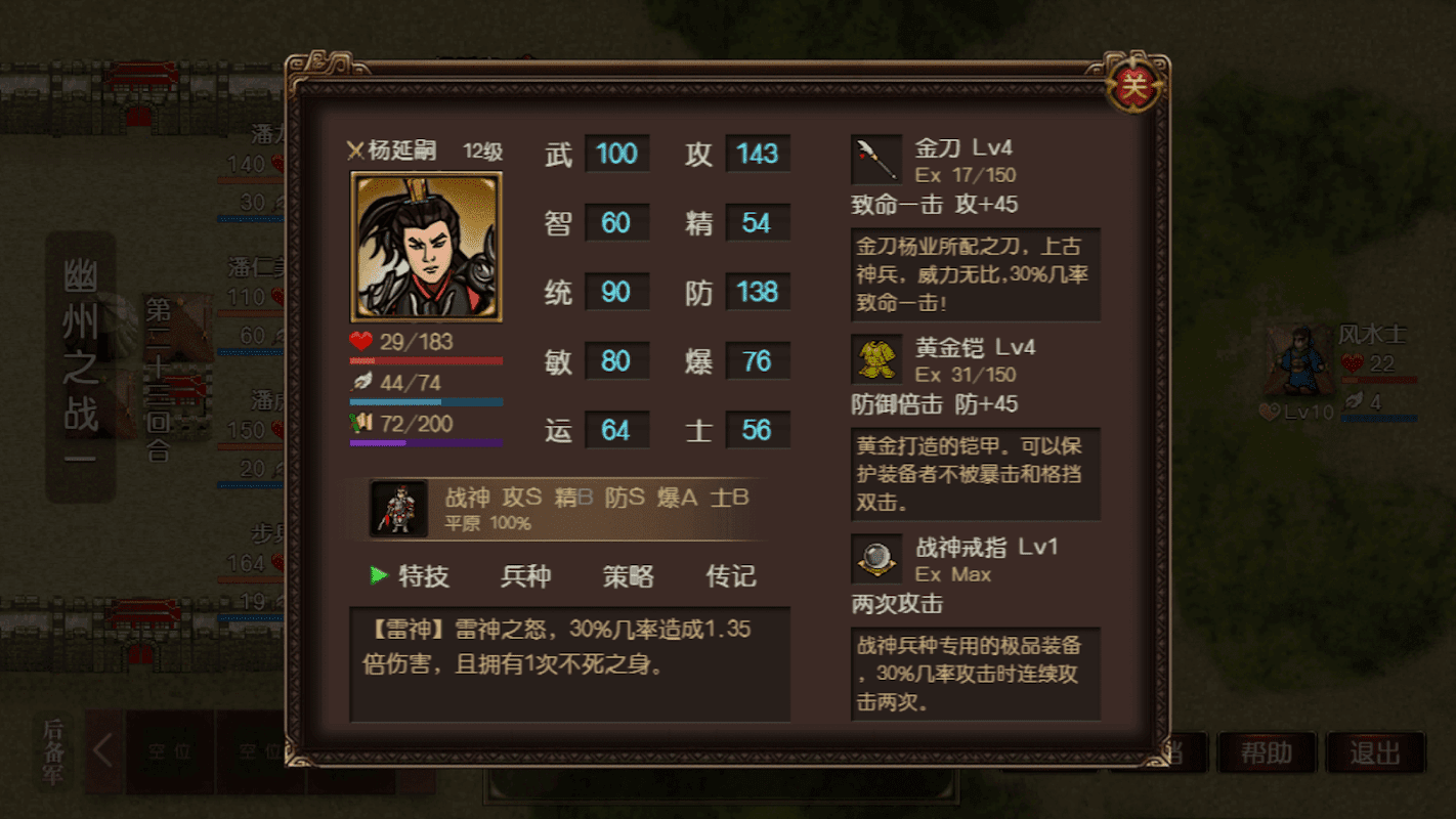 战斗机制结合了吞食天地+曹操传的形式。游戏内还贴心内置了作者精心提炼的要点攻略,帮助你轻松完成全部单挑、解锁特殊物品奖励等隐藏要素,让你的游戏之旅更加顺畅。