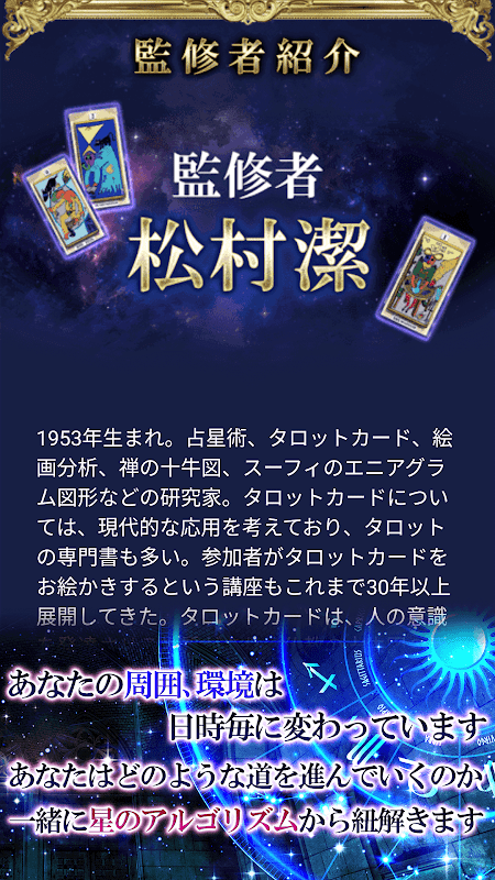 Akhirnya turun! Astrologi Kiyoshi Matsumura dan ramalan tarot, master terakhir astrologi Jepang. Silakan nikmati pencapaian kelas Guinness dari lebih dari 100 buku dan ramalan otentik yang disukai para profesional.