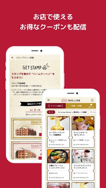 Pencarian mudah untuk berbagai acara yang diadakan di Gudang Bata Merah Yokohama! Ada juga banyak kupon dan manfaat reli stempel hanya untuk anggota aplikasi. Ini juga sangat berguna sebagai informasi jalan-jalan di akhir pekan.