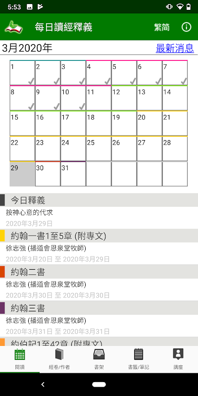 附設讀經進度顯示功能,讓讀者了解個人讀經的情況,建立每天讀經靈修的習慣。