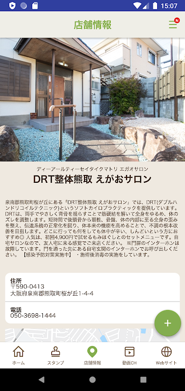 【DRT整体熊取 えがおサロン】の公式アプリが登場。アプリを通して【DRT整体熊取 えがおサロン】の新着情報やお得な情報をリアルタイムで受け取ることができます。また、いつでもお手元のスマートフォンから、メニューやご希望のお時間帯のチェック・ご予約などが可能です。アプリをインストールしていただくことにより【DRT整体熊取 えがおサロン】を、より便利に身近にご利用していただけます。