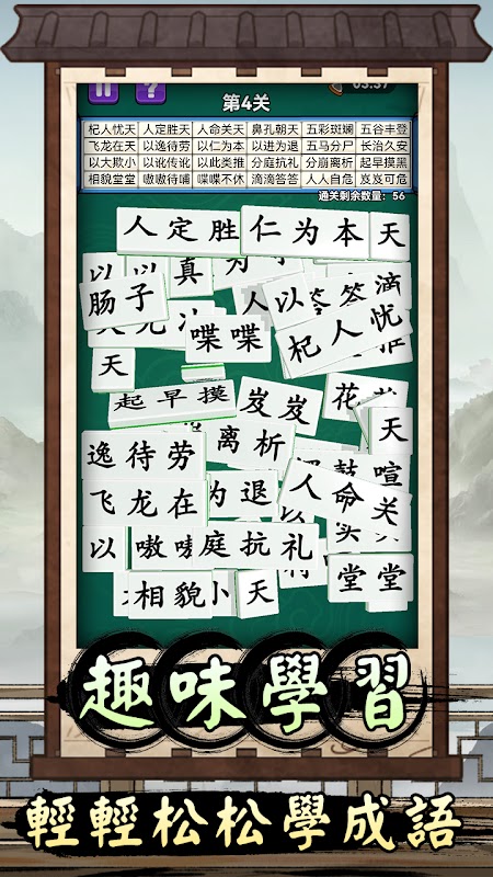 Selamat datang di "Hilangkan Idiom", permainan puzzle yang menggabungkan budaya tradisional dan hiburan modern. Di sini Anda akan menantang diri Anda sendiri untuk menyusun idiom lengkap dengan memilih blok kata. Setiap level dirancang dengan cermat untuk menguji cadangan idiom Anda dan melatih pemikiran cepat Anda. Dalam sepuluh langkah, dapatkah Anda melihat peluang dan mengucapkan idiom yang benar? Bergabunglah bersama kami dan mulailah perjalanan idiom yang penuh kebijaksanaan dan kesenangan!