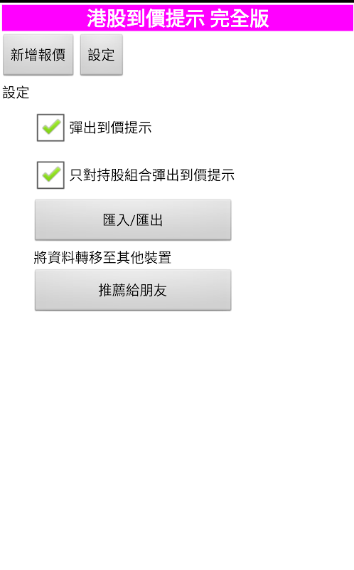 這是適合輕鬆型投資者的股票到價提示工具. 市面上操作最簡易的介面. 不會在背景持續更新資料. 不會持續消耗裝置的電量與數據用量.(長效模式下除外)