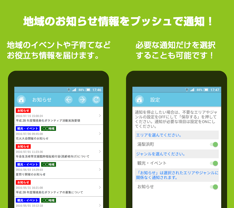 暮らしに便利な情報をプッシュ通知でお知らせします。