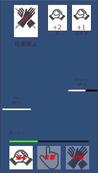 防御:相手の攻撃を防ぎます。ただし3以上のダメージは防げません。