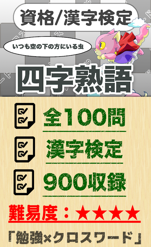 Informasi APK 漢字検定 四字熟語クロスワード 無料印刷OK! 勉強/漢字ア