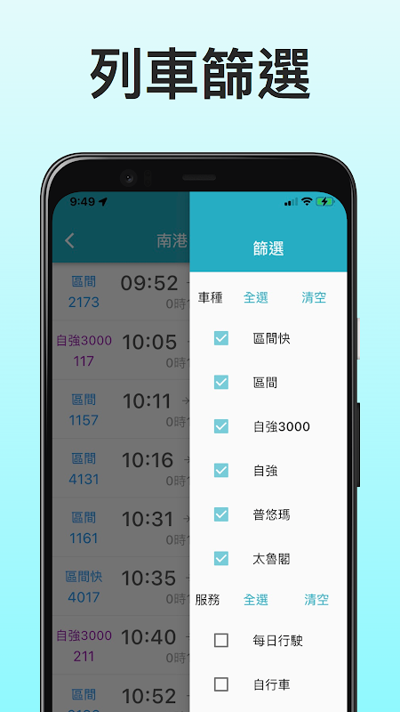 3. Jadwal Stasiun: Mendukung semua stasiun kereta Taiwan Railways, menampilkan jadwal maju dan mundur.