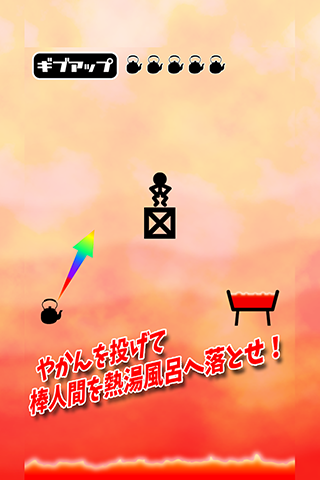 やかんを投げて棒人間を熱湯風呂に落とすアクションパズル!