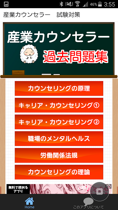 このアプリは、メンタルヘルスや心の病に産業カウンセラーを目指す方向けの非公式の無料学習アプリです。とくに仕事について、問題を抱えて困っている人の話に耳を傾け、助言を与える専門家のことです。主に企業などで人間関係やストレスなどに悩む従業員の心のケアを専門的に行います。現代のストレス社会において、必要不可欠な仕事です。メンタルヘルスマネジメントも一緒にとるとさらに役立ちます。心のカウンセリングをして、社会を助ける意義のある資格ですので、皆さまの合格を心より祈っております。