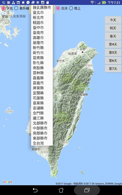 用地圖呈現全台灣各鄉鎮7日及各縣市3日氣象,迅速一目了然氣象變化