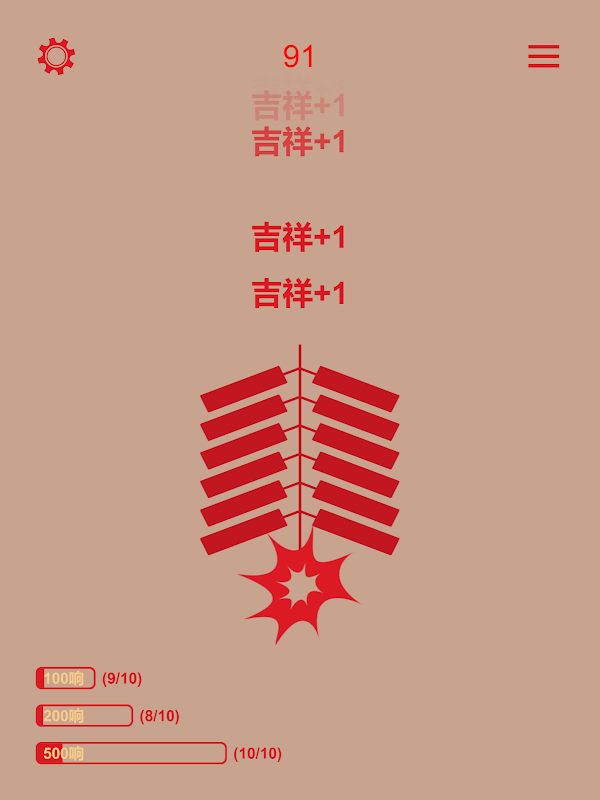 Simulasikan petasan asli, klik pada layar untuk menyalakan meriam kecil, dan pada saat yang sama, Anda dapat mengumpulkannya menjadi petasan gantung, lalu menyalakan seluruh gantung, meriah dan menguntungkan.