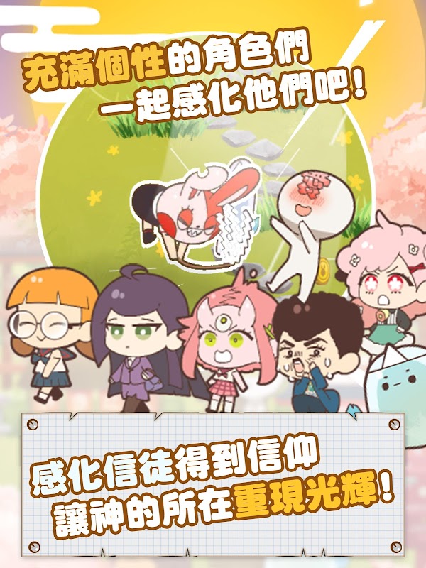 《病病神社建造中》裡眾多個性的遊戲角色,可愛精巧的絕妙段子,手感爽快的度化打擊感,沒有設限全區域擺放,簡單趣味的病病玩法!