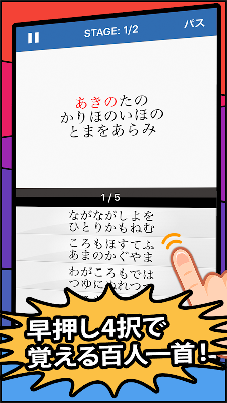 百人一首チャレンジ - 暗記、早押し、全問制覇に挑戦しよう 4.47.9