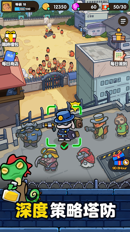 Menjebak Musuh: Panggil bangunan hewan unik seperti Meriam Gurita dan Tombak Katak untuk menciptakan garis pertahanan bebas tembak dan mencegah para tahanan melarikan diri.