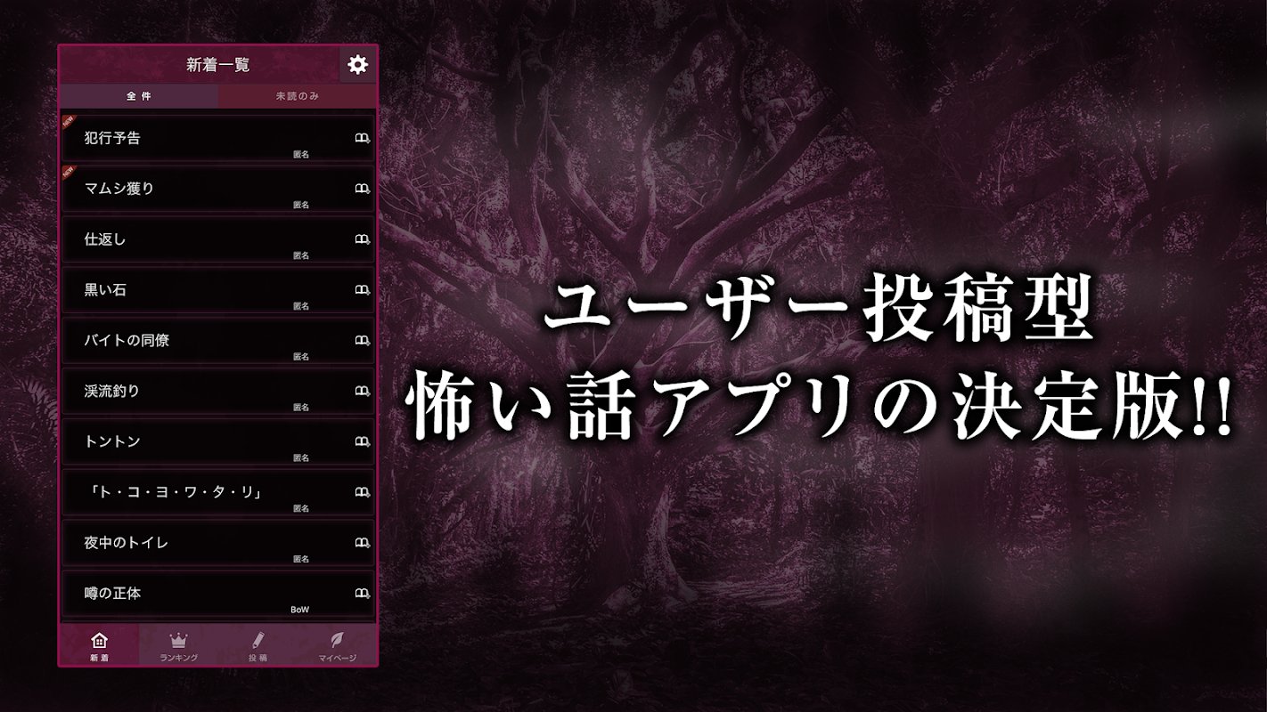ユーザー投稿型 怖い話アプリの決定版!!