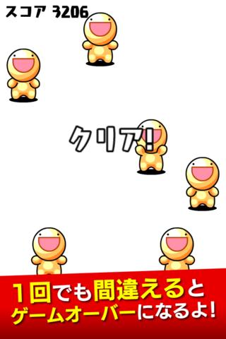 一瞬だけ表示されるキャラの位置を覚えて、タッチしよう。1回で間違えるとゲームオーバー!