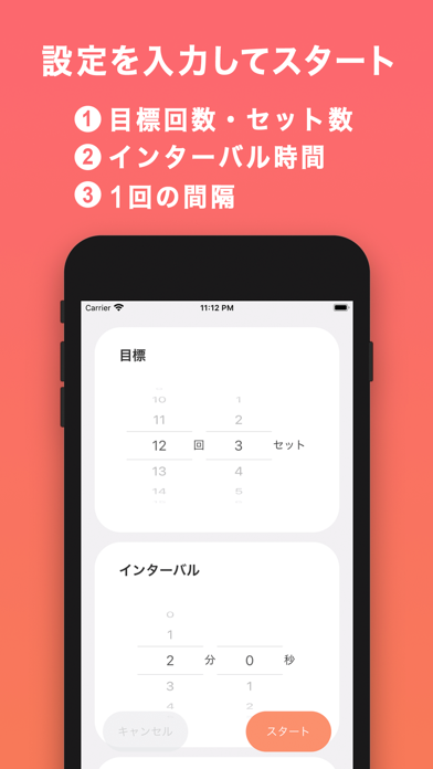 3. 1セット目のカウントが終わると「休憩」の声の後、設定したインターバル時間をカウントダウンします。