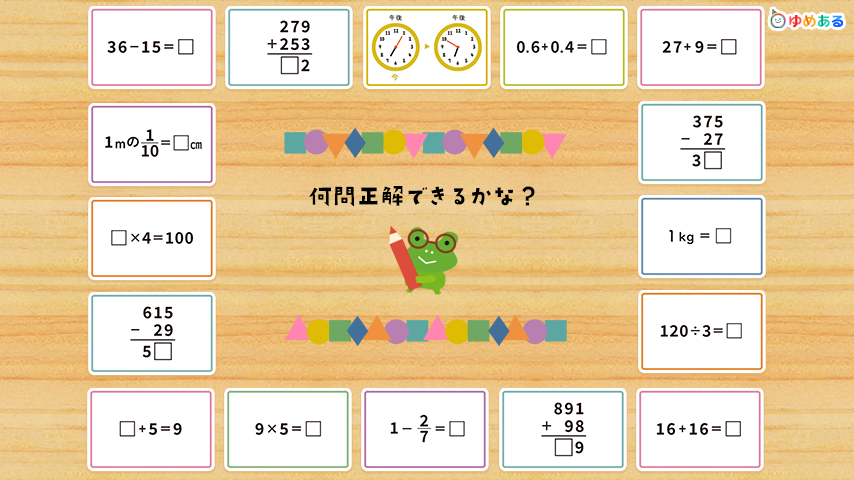 Ini adalah aplikasi pembelajaran yang menggabungkan penjumlahan/pengurangan, perkalian/pembagian, waktu, satuan, pecahan, dan desimal dengan permainan karuta.