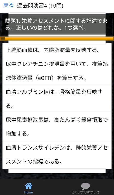 このアプリでは「応用栄養学」分野の出題になります。