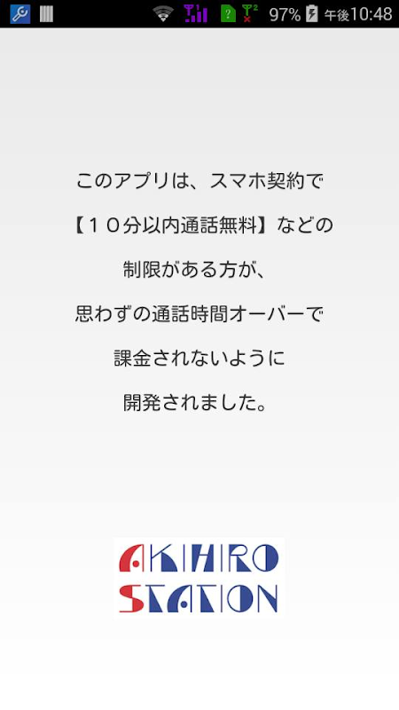 Aplikasi ini adalah pengatur waktu panggilan telepon seluler termudah dan paling sederhana di Jepang. Ini adalah versi terbaru dari Kake-hodai, aplikasi tindakan pencegahan penagihan untuk paket "10 menit dan 5 menit makan sepuasnya / sepuasnya".