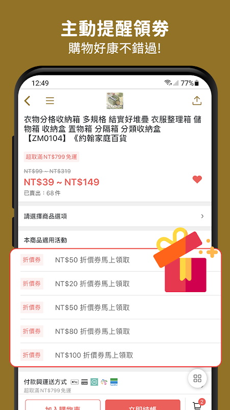 ※ 直覺優化的操作介面、輕輕一滑瀏覽各種商品