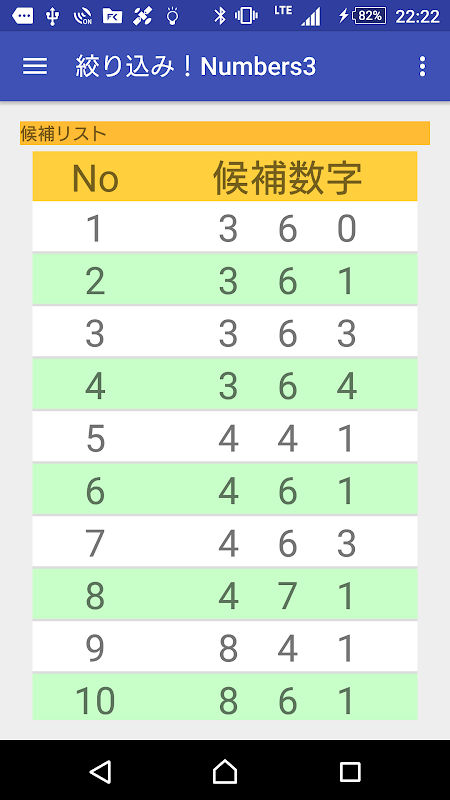 数字選択式宝くじ「Numbers3」(ナンバーズ3)の絞り込みアプリです。