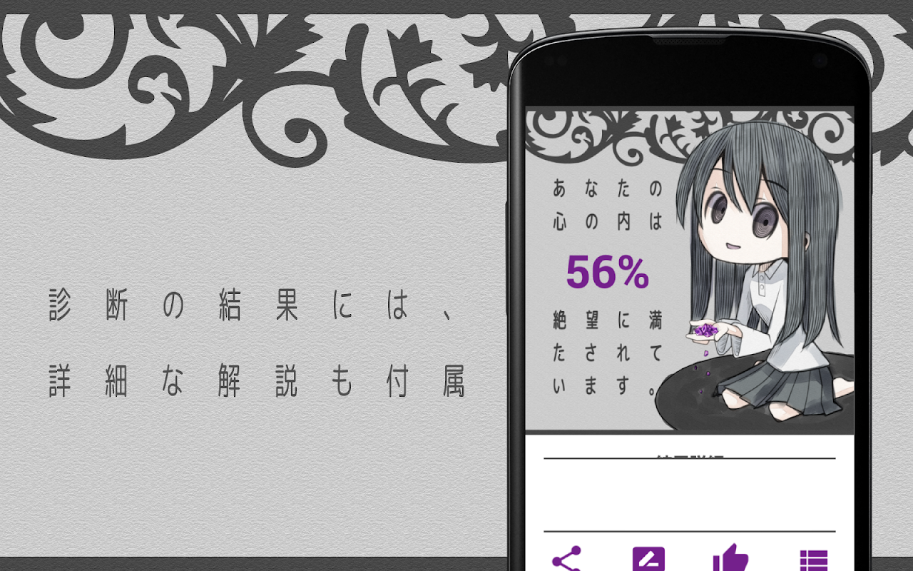 Dalam aplikasi ini, bagaimana putus asa sendiri berapa banyak, Anda dapat didiagnosis dengan pertanyaan dan tes psikologis 15 menjadi pertanyaan secara acak.