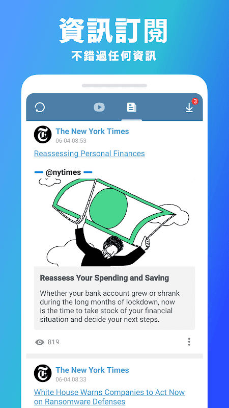 - Berita - baca konten saluran langganan Anda seperti berita utama