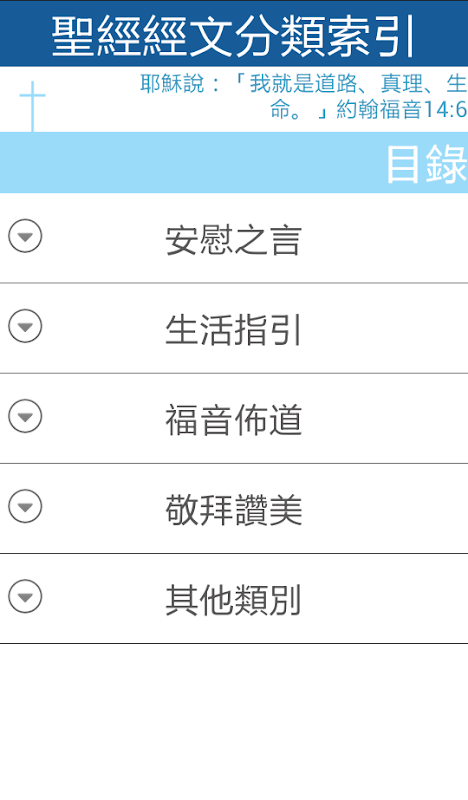 提供各類聖經經文,包括安慰之言、日常生活等等。