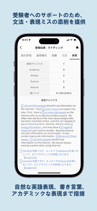 ・Ekspresi: Secara akurat menunjukkan ekspresi alami bahasa Inggris, ekspresi akademis, kata-kata lisan dan tulisan, dan bahkan kesalahan nuansa