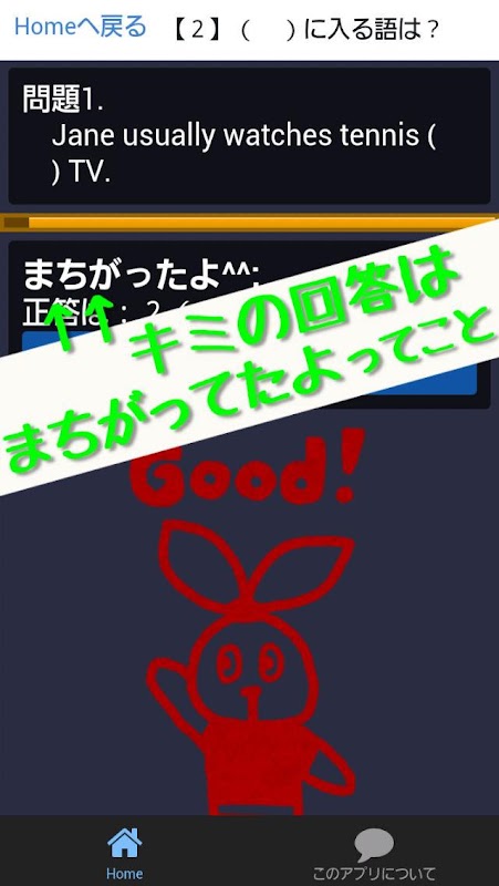 このアプリでは、英語の基礎的な内容、会話文の問題が取り組めます。
