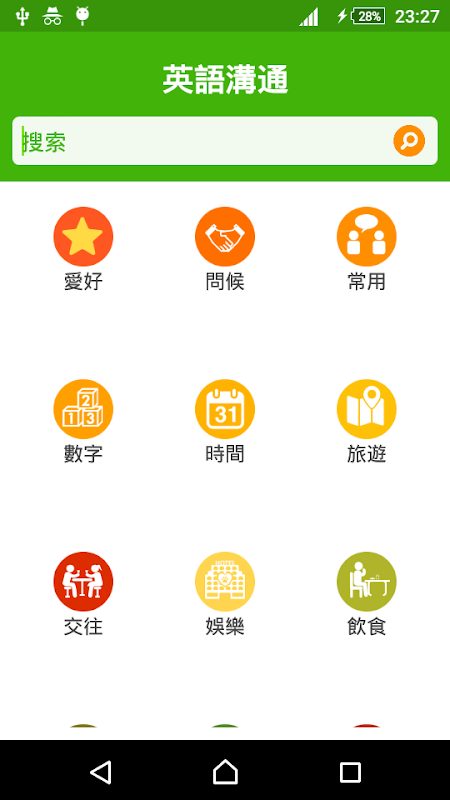 學習 英語 溝通 應用 程序 在 智能 手機 上 支持 學習 英語 直觀, 高效 而不 無聊. 應用 程序 可以 幫助 你 提高 學習, 研究, 旅遊, 留學, 勞務 輸出 等 方面.
