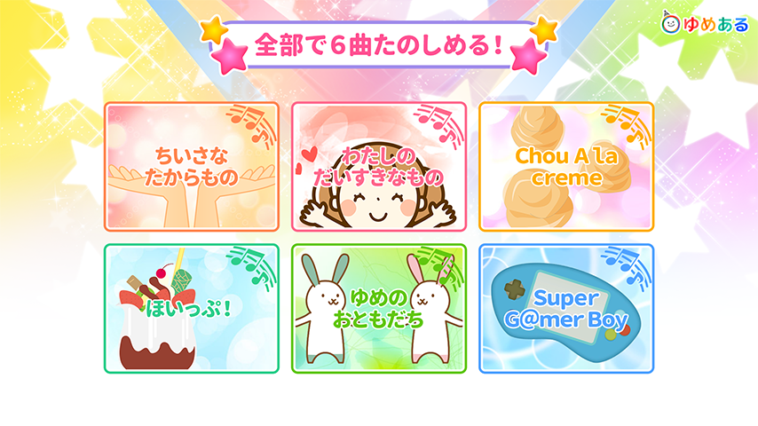 ※ゲームを星3評価で何度かクリアすると、選択できる曲が増えていきます。