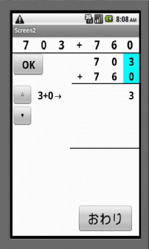 ・問題を1桁計算に分解し、計算する数字が背景色で