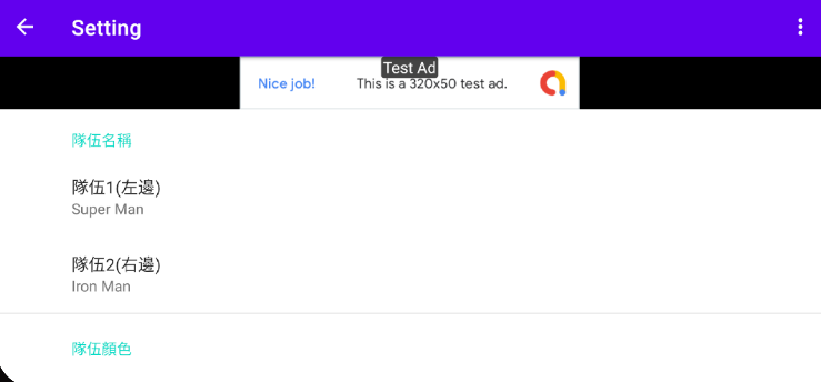 Tetapkan nama 2 tim, warna 2 tim, waktu permainan, dan skor.