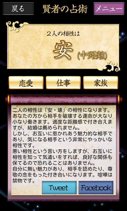 “宿曜”をベースにした現代の究極占術「賢者の占術」をいつでもどこでも【無料で】楽しめる占いアプリです。