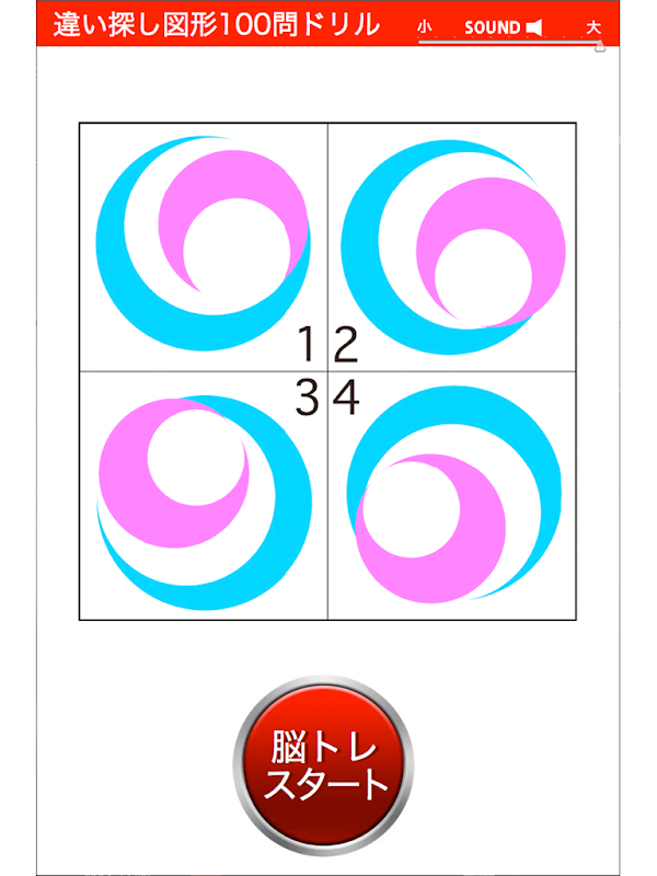 ★ 脳トレ「違い探し図形問題」が100問あります。