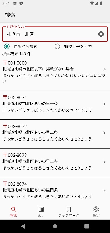 Ini adalah aplikasi pencarian kode pos yang mendukung informasi kode pos per 31 Agustus 2023 (Reiwa 5).