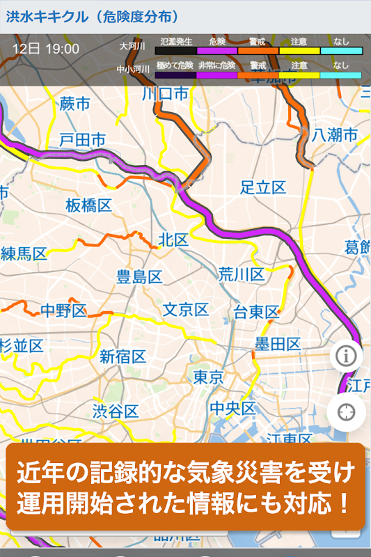 Anda dapat melihat sekilas informasi pencegahan bencana dan prakiraan cuaca seperti gempa bumi, angin topan, hujan lebat, petir, dan angin puting beliung.