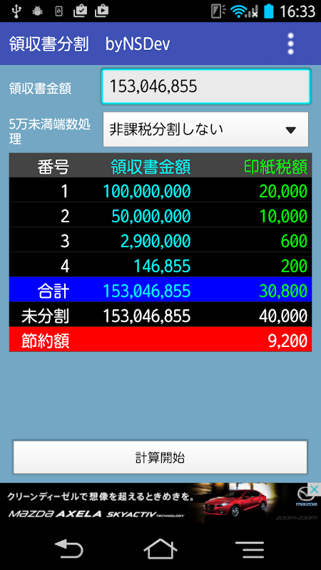 Ini adalah aplikasi yang secara efisien membagi tanda terima dengan sesedikit mungkin lembar untuk mengurangi pajak materai pada tanda terima sebanyak mungkin.