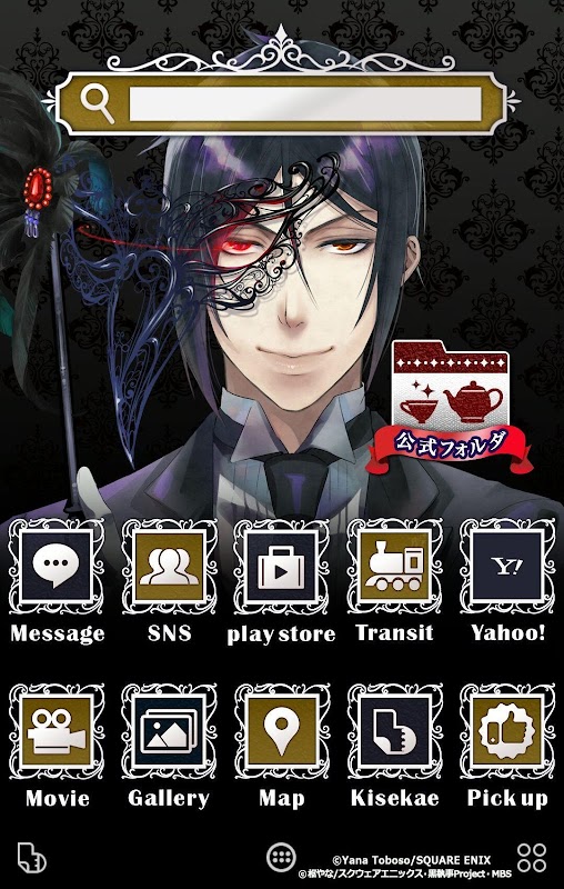アプリアイコンや検索窓まで、スマホが一瞬で美しき黒執事の世界に……。