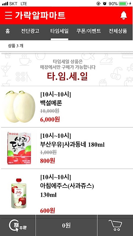 가락알파마트에서 진행 중인 행사상품을 기간별, 종류별로 구분하여 알려드리고 있습니다.
