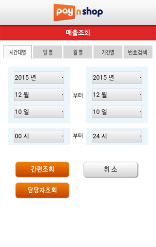 ▣ 매출현황 조회 : 시간별,일별,월별,년별 매출현황 조회 가능
