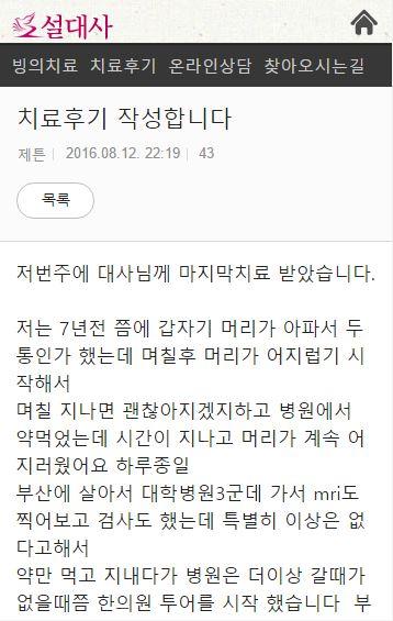설대사 앱은 현재 까지의 빙의 치료 사례와