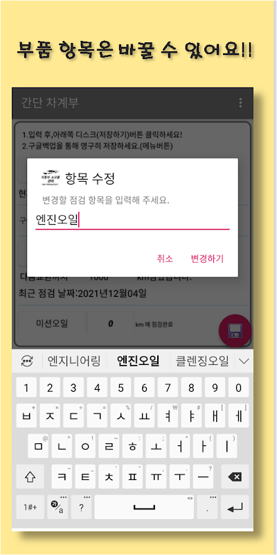 간단 차계부 (차량 관리 ,소모품 관리) 1.0